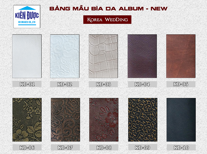 Album bìa da các loại, Album bìa da nguyên tấm các màu-các loại da, Album bìa da trổ hình, Album bìa tạp chí, Album bìa da có ảnh mica cứng