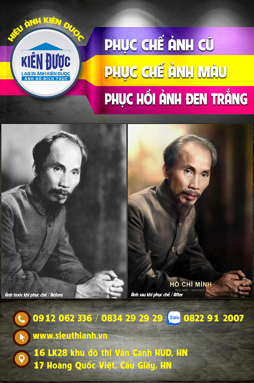 Kiên Được tự hào là nơi in phóng và chỉnh sửa, phục chế, phục hồi lại ảnh hỏng, ảnh tư tiệu cũ cho các bảo tàng, cơ quan, đơn vị, ...